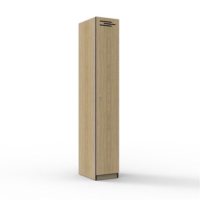 Rapid Infinity 1 Door Melamine Locker 1850mm H x 305mm W x 455mm D Finished In Natural Oak Laminate, Featuring Black Edging Includes 1 x Hat Shelf & 1 x Hanging Rail Key Locking - Includes 2 x Keys Per Lock Adjustable Levelling Feet Supplied Flat Pack Soft Close Hinges E0 Rated MR Melamine Carcass E0 Rated MDF Doors With Clear Sealant On Vent Cutouts Electronic Locks Available At Additional Cost 3 Year Warranty