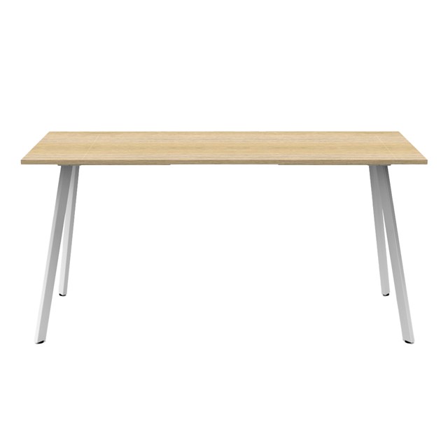 The worksurface provides a warm and inviting aesthetic, while the powder-coated steel frame ensures durability and stability.