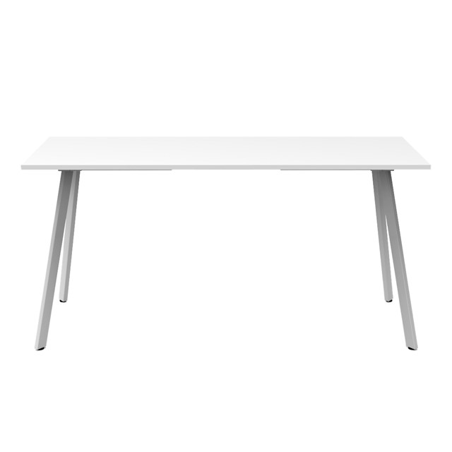 The worksurface provides a warm and inviting aesthetic, while the powder-coated steel frame ensures durability and stability.