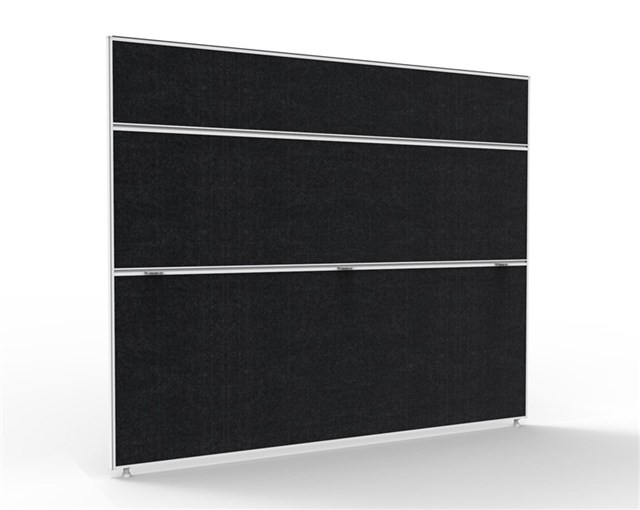 The SHUSH30+ screen range features a 30mm slimline screen with a square profile, powder coat frame and a full fabric pinnable surface with adjustable leveling feet