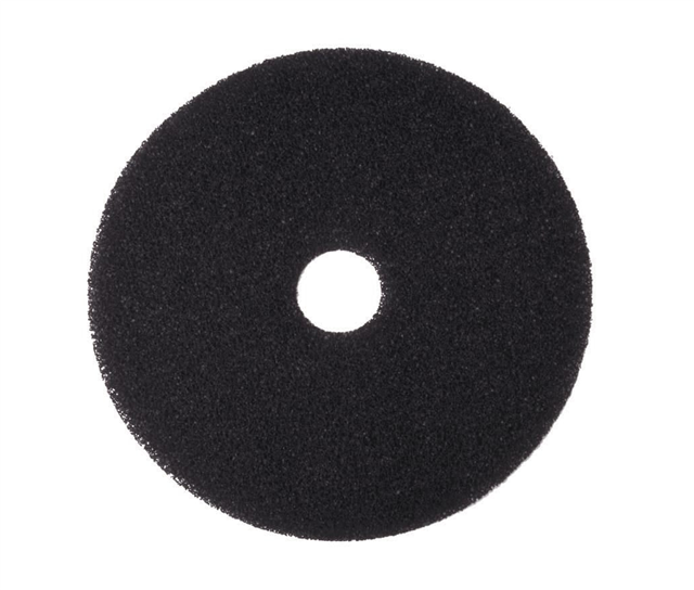 Heavy-duty black pads for floor stripping and cleaning tasks.
