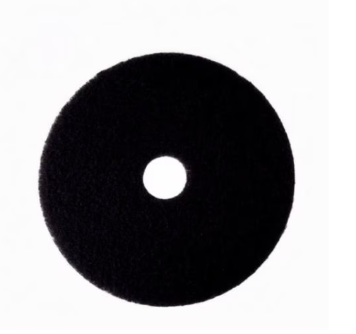 The 3M Black Stripper Pad 7200 is an 18-inch, industrial-grade floor maintenance pad made from nylon and polyester fibres with an open-textured, non-woven construction that holds abrasive particles to provide aggressive stripping performance