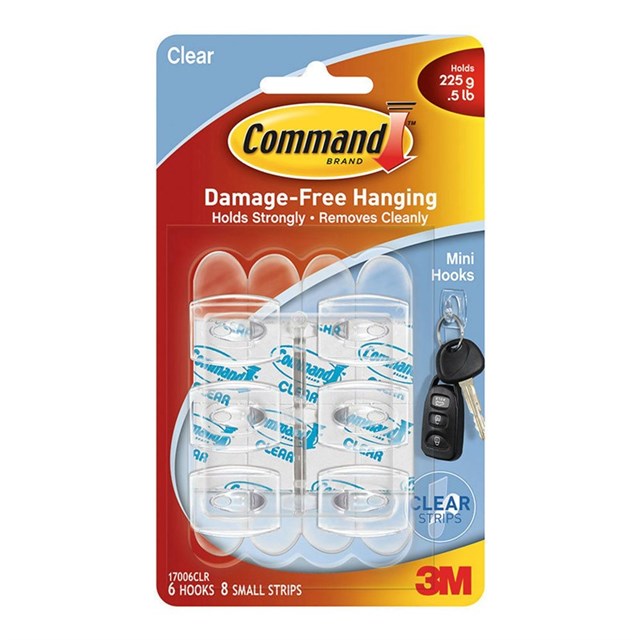 3M Command Hook17006Clear Mini Pack 6 Box 6 Adelaide Direct Stationers