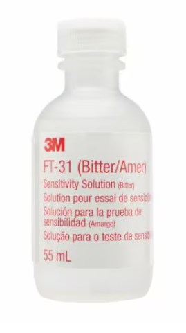 3M FT-31 Sensitivity Solution Bitter is a bitter-tasting solution, also known as Bitrex, used in a qualitative respirator fit test to ensure the wearer's respirator mask creates a proper seal against airborne particles
