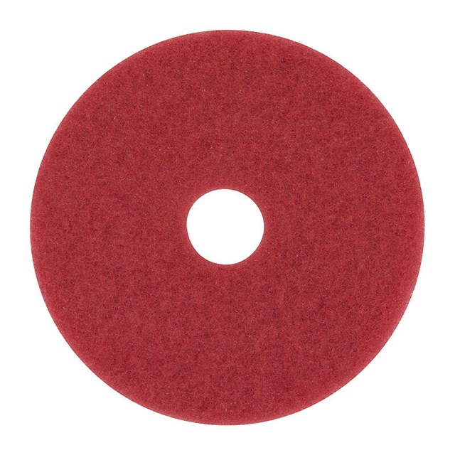 The 3M Red Buffer Pad 5100 16-inch is a versatile floor maintenance pad made of polyester fibre with a polyester non-woven web, designed for light-duty cleaning and spray buffing on hard floors