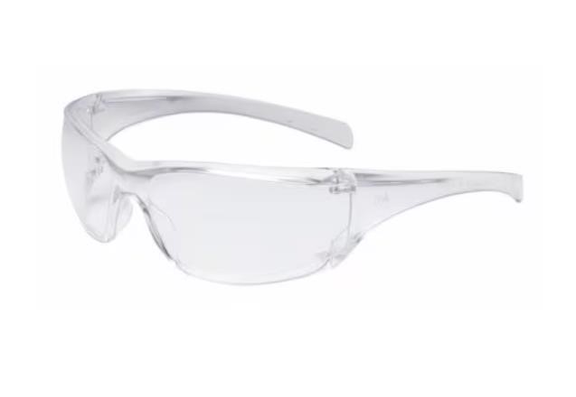 • The 3M Virtua Eyewear 11818-00000-100AS is a pair of clear, anti-fog safety glasses featuring a lightweight, frameless design with an anti-fog coating, clear anti-scratch lenses, and integral side shields