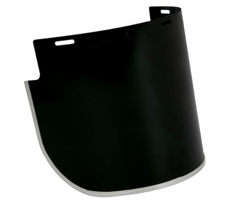 The 3M VV904 Chinguard Thermotuff Shade 5 is a personal protective equipment face shield visor made of durable polycarbonate, designed to provide high-heat resistance, protection against molten metal, chemical splashes, and impacts, while also reducing glare and UV radiation