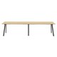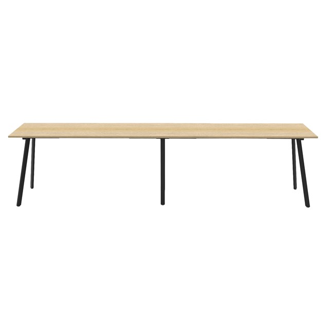 Eternity High Bar Table 4200mm W x 750mm D x 1050mm H Natural Oak Worksurface Matching Rigid Edge ** 2 Piece Table Top ** 60mm x 30mm Splayed Leg Underframe In Black P/C Dual Cross Bar For Added Stability 25mm T E0 Enviroboard Melamine Worksurface Adjustable levelling Feet 5 Year Warranty