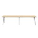 Eternity High Bar Table 4200mm W x 750mm D x 1050mm H Natural Oak Worksurface Matching Rigid Edge ** 2 Piece Table Top ** 60mm x 30mm Splayed Leg Underframe In White P/C Dual Cross Bar For Added Stability 25mm T E0 Enviroboard Melamine Worksurface Adjustable levelling Feet 5 Year Warranty
