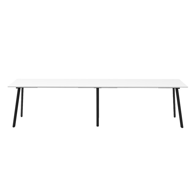 Eternity High Bar Table 4200mm W x 750mm D x 1050mm H Natural White Worksurface Matching Rigid Edge ** 2 Piece Table Top ** 60mm x 30mm Splayed Leg Underframe In Black P/C Dual Cross Bar For Added Stability 25mm T E0 Enviroboard Melamine Worksurface Adjustable levelling Feet 5 Year Warranty