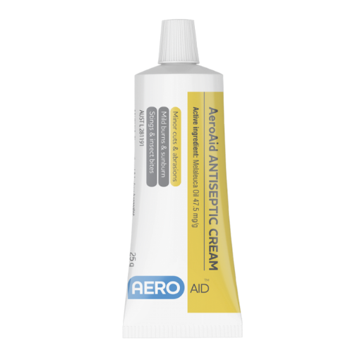 AeroAid Antiseptic cream is for the relief of minor cuts & abrasions, minor burns, sunburn, insect bites, stings & itches