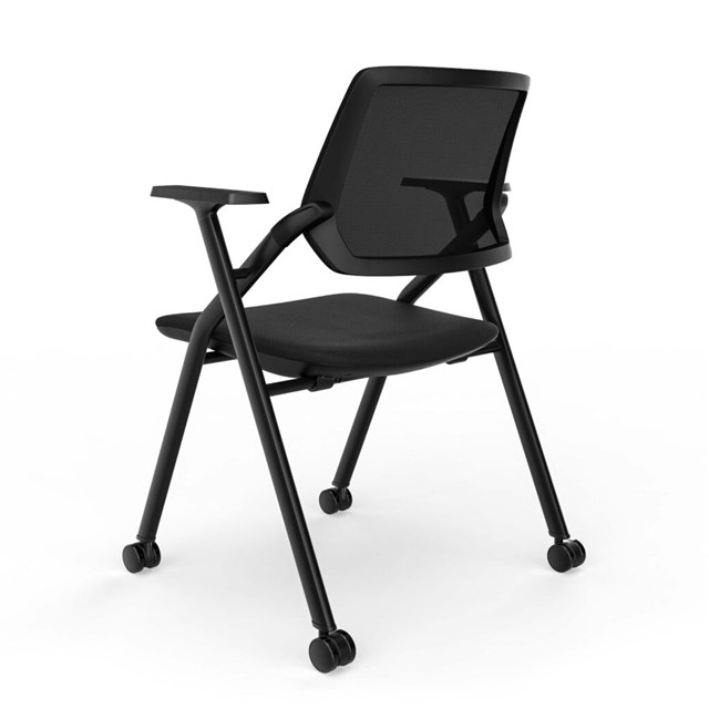 Air Mesh Back Training Chair - Black Fabric Foldable With Nesting Capabilities Black Mesh Back Rest with Black Fabric Upholstered Seat Pan Tablet Arm Sold Separately Fixed Arm Rests 110 Kg Weight Rating 5 Year Warranty
