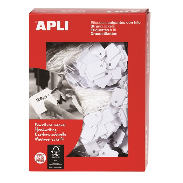Apli Strung Tickets 13x20mm White 1000 Box