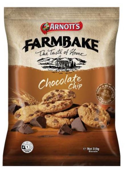 Arnott's Farmbake Chocolate Chip Cookies 310g (Sold as Each, 12 in a Box)