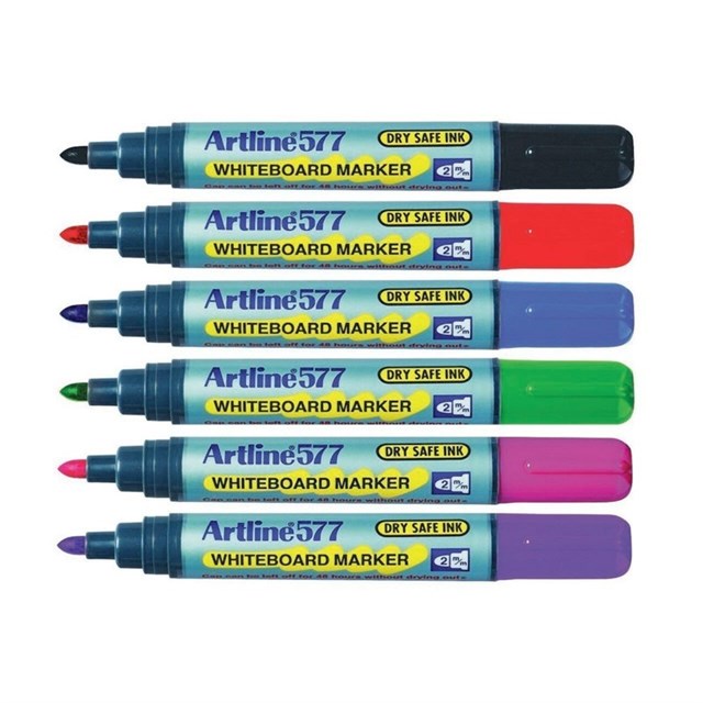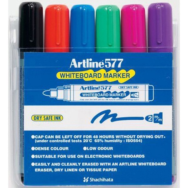 Artline 577 Whiteboard Markers Assorted 6 Pack
