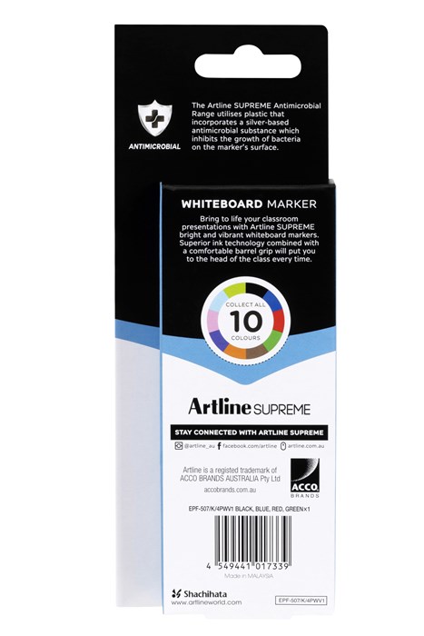 Artline Supreme Whiteboard Marker Bullet Assorted 4 Pack