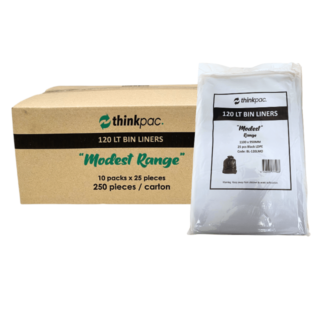 Aspire Bin Liners Everyday 120L Black, 25 Per Pack, (Sold as Each, 10 in a Box) Adelaide Direct Stationers