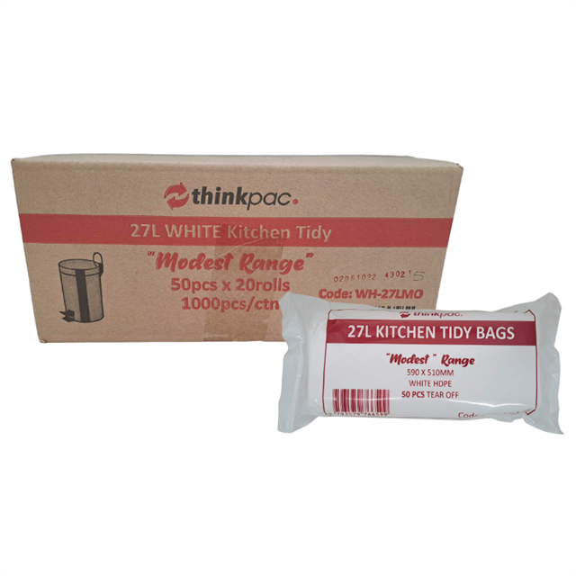 Aspire Bin Liners Everyday 27L White, 50 per Roll (Sold as Each, 20 in a Carton) Adelaide Direct Stationers