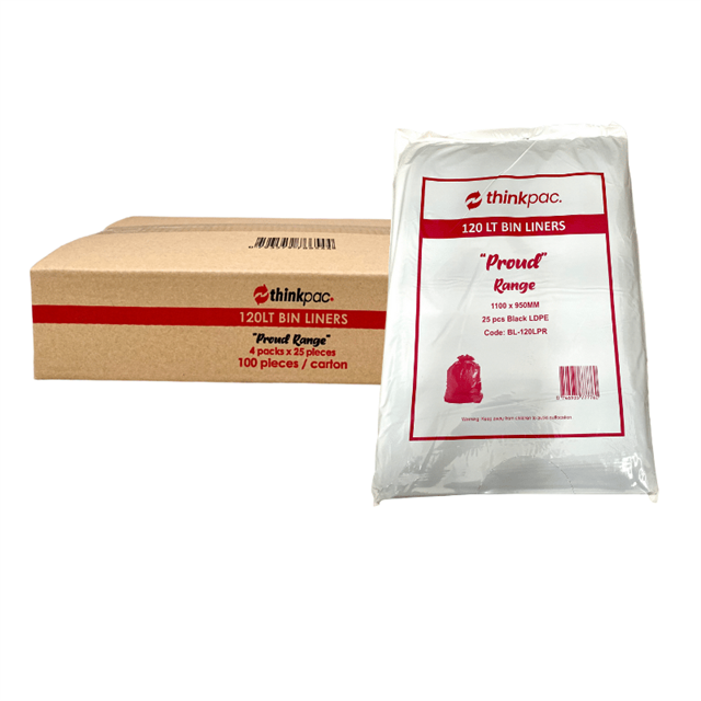 Aspire Bin Liners Hospitality 120L Black, 25 Per Pack, (4 Per Carton) Adelaide Direct Stationers