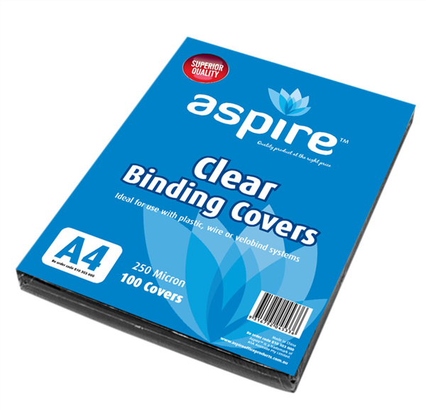 Aspire Binding Covers 250 Micron A4 Clear 100 Pack Adelaide Direct Stationers