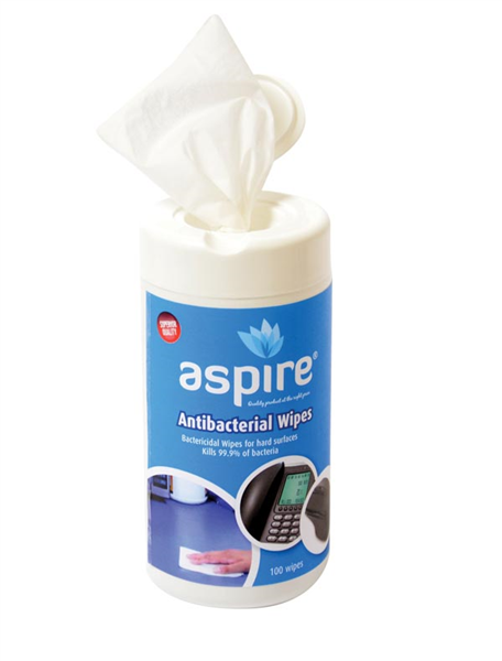 Aspire Bactericidal Wipes help to eliminate dangerous bacteria found on surfaces around the home or office and reduce re-contamination.