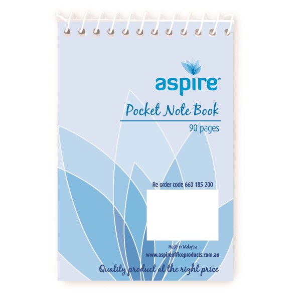 Aspire Spiral Pocket Notebook Top Opening 90 Pages (Sold as Each, 20 in a Pack) Adelaide Direct Stationers