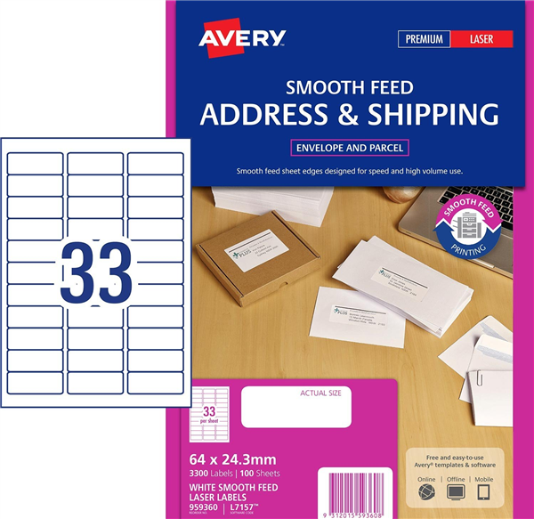 Avery Address Labels Smooth Feed 33Up White 100 Pack Adelaide Direct Stationers