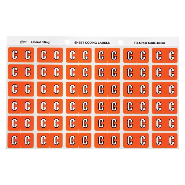 There are 180 orange Alphabetical C Side Tab Colour Coding Labels in a pack with a size of 25mm x 38mm ready to stick straight onto the side tab of your Avery Lateral Files.