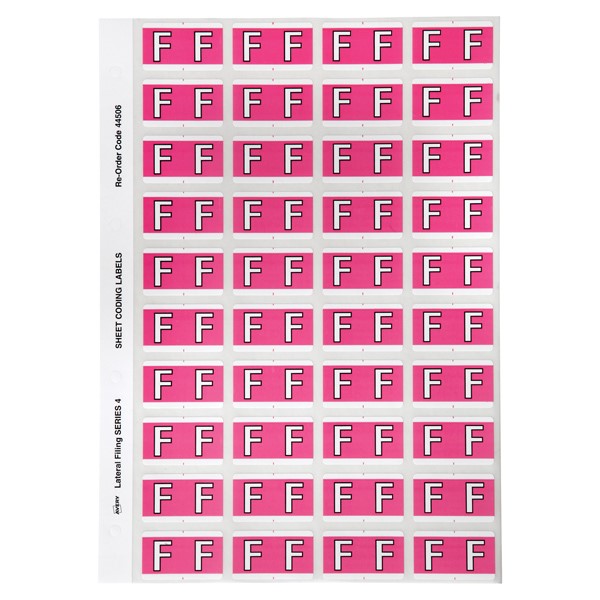 There are 240 pink Alphabetical F Side Tab Colour Coding Labels in a pack, size of 25 x 42mm ready to stick straight onto the side tab of your Avery Lateral Files.