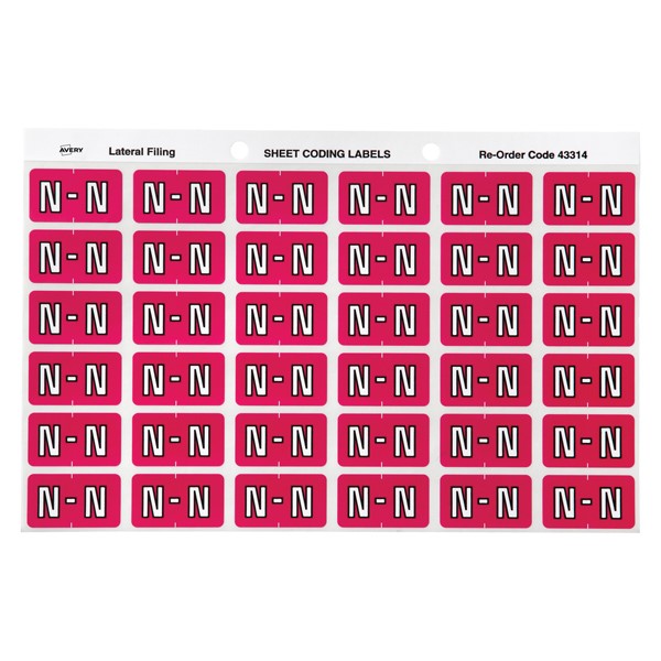There are 180 magenta Alphabetical N Side Tab Colour Coding Labels in a pack with a size of 25mm x 38mm ready to stick straight onto the side tab of your Avery Lateral Files.