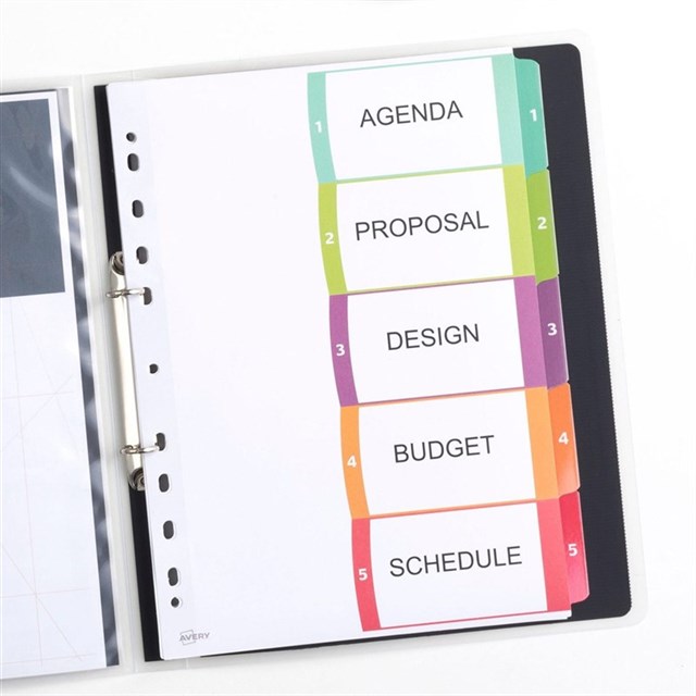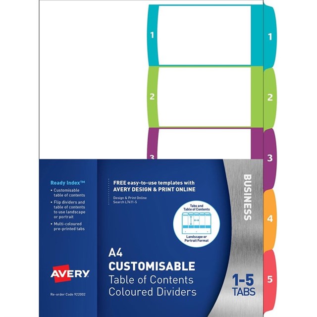 Avery Customisable Ready Index 922002 A4 1-5 Tab Divider Adelaide Direct Stationers