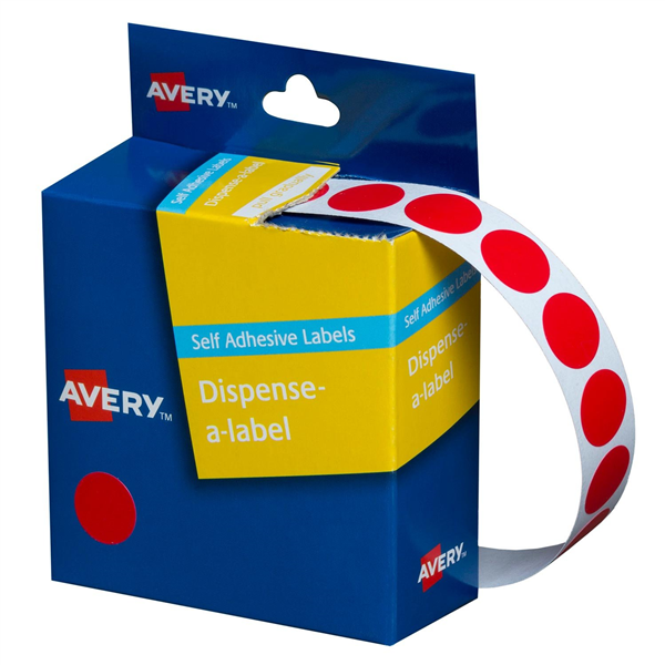 Avery Dispenser Dot Stickers 14mm Diameter Red 1050 Pack (Sold as Each, 5 in a Box) Adelaide Direct Stationers