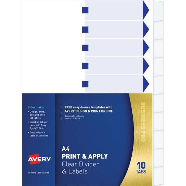 Each pack includes a set of A4, 10 tab dividers, table of contents sheet and 1 Easy Apply Label Sheet.