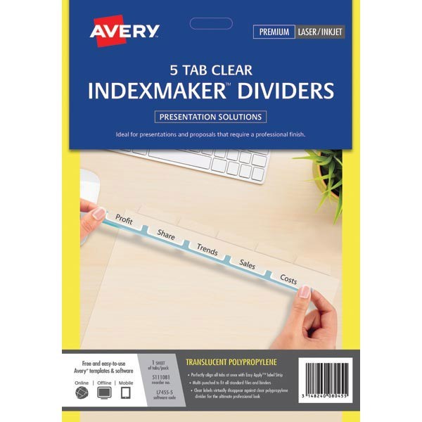 Avery Index Maker Label Divider 5 Tab Punched A4 Clear Adelaide Direct Stationers