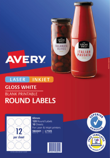 Avery L7105 Labels Glossy Round 12UP White 10 Pack Adelaide Direct Stationers