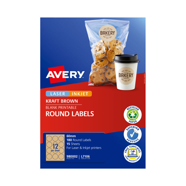 Avery Label Round Kraft Brown 60mm 12Up Pk15 are perfect for professional-looking labels that blend into brown and kraft boxes and bags