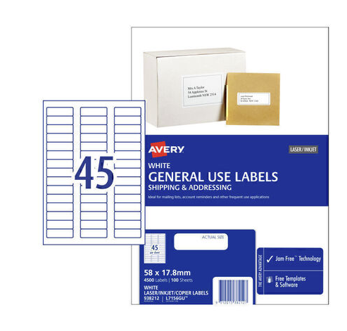Avery General Use Label L7516GU 58x17.8 45Up Pk100 are the right solution for most of your everyday labelling needs