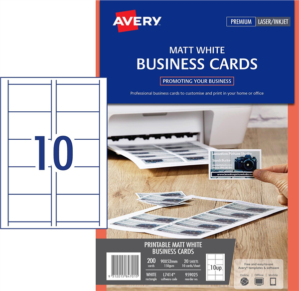 Avery L7414 Laser Business Cards 90x52mm White 200 Pack Adelaide Direct Stationers