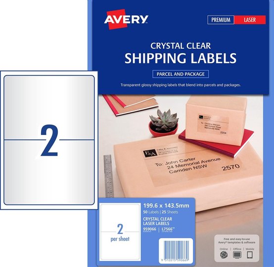 Avery L7566 Laser Labels 2UP Crystal Clear 25 Pack Adelaide Direct Stationers