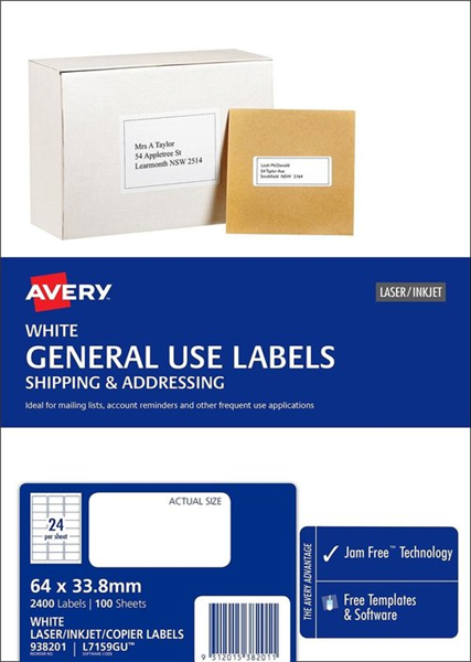 Avery Label General Use 24Up 64x33.8mm White 100 Pack Adelaide Direct Stationers