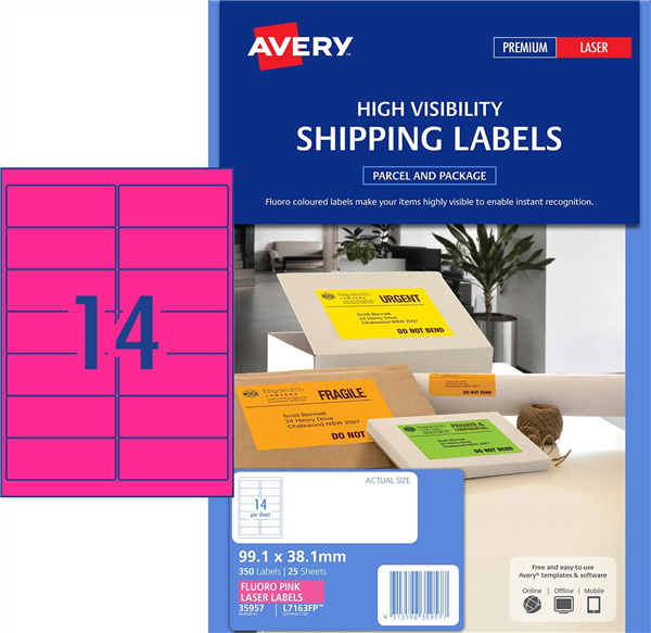 When you want something to stand out, only High Visibility fluoro will do and Avery fluoro pink shipping labels wont fail to grab attention