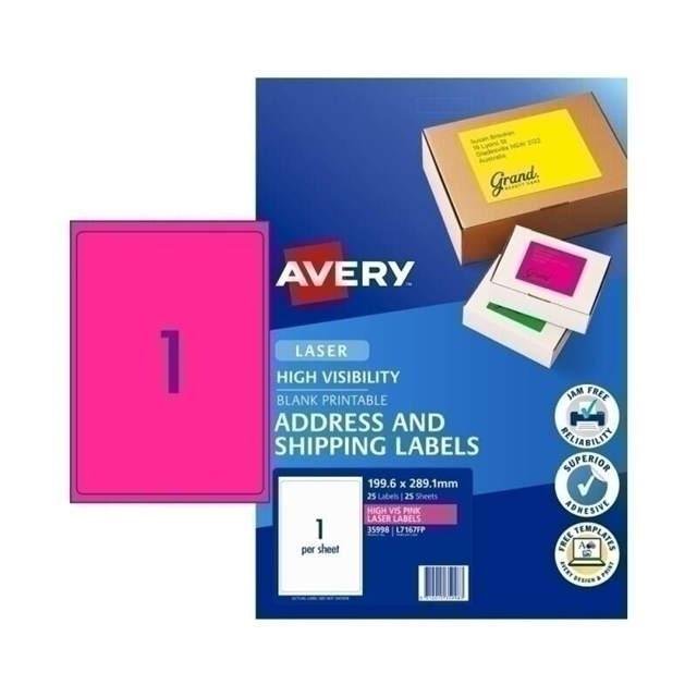 Avery Labels L7167FP 1Up Fluro Pink Pk25 Adelaide Direct Stationers