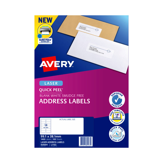 Avery Laser Label QP L7163 14Up Pack 100 Adelaide Direct Stationers