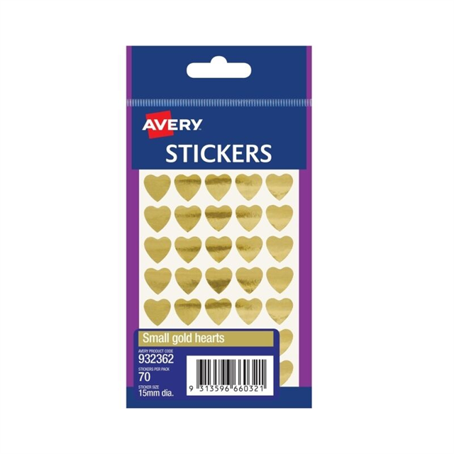 Avery Stickers Heart 15mm Gold 70 Pack Adelaide Direct Stationers