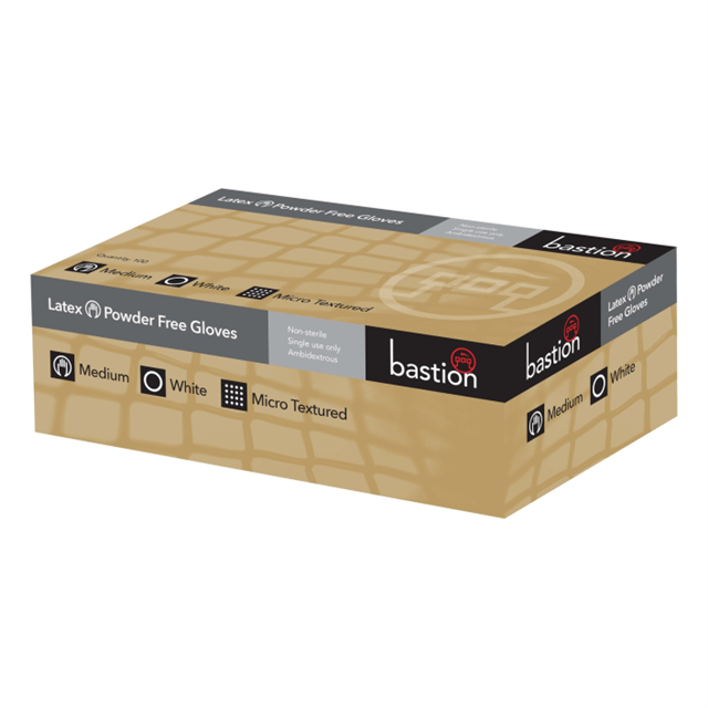 Bastion Latex Gloves Powder Free Micro Textured Medium White 100 Pack (Sold as Each, 10 in a Box)