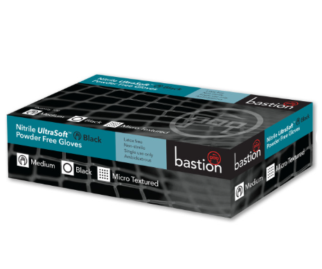 Bastion Nitrile Black X Small ultrasoft Powder Free Gloves Pack 100