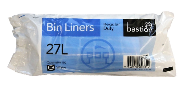 Bastion Regular Duty Bin Liners White 27 Litre Roll 50
