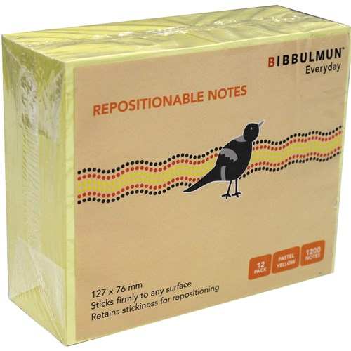 Bibbulmun Sticky Notes 76x 127mm Yellow 100 Sheets Pad 12Pack Adelaide Direct Stationers