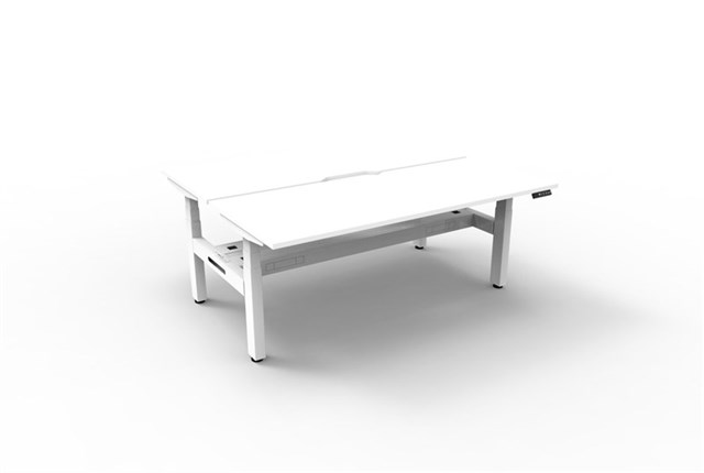Boost Plus Back To Back Workstation - Natural White/ White Satin 1800mm W x 1500mm D x 620mm - 1270mm H (Overall) 1800mm W x 750mm D x 620mm - 1270mm H (Per User) E0 Rated 25mm T Table Top Finished In Natural White With Rigid Edging & 50mm D Scallop Cut Out To Rear Underframe Finished In White Satin Powder Coat Fully Ducted Cable Tray With Punchout For Power & Data To be Fitted To Either External Or Internal Of Frame Digital Control Panel With 3 Pre-Set Positions, LED Display Panel, Keypad Safety Lock & Reminder Alarm Setting Anti- Collision & Anti-Tilt Technology Column Size: 90mm x 60mm Height Range: 595mm-1245mm ( Without Table Top ) Lifting Capacity: 120 Kg Max Speed: 38mm Per Second Adjustable Leveling Feet Dual Motor Desk Mounting Top Plate Size: 500mm Steel Gauge: 3.0mm, 2.0mm & 1.5mm Used Throughout Noise Emission: <50DB Surge Immunity: 1kV(L1 to L2) / 2kV(L1,L2 To PE) ESD Protection: +-4.0kV ( Contact Discharge )/+-8.0kV ( Air Discharge ) Input Power: 110-240V Transformer Power:128W (.03W On Standby ) SAA and C Tick Certification Additional Items Also Available Include: 30mm T Pinnable Privacy Screen ( SHS189 + B2-BBRAC ) Bluetooth Control Box ( B2-BTCB ) Cable Tray Bridge ( B2-B2BBR ) Flexible Cable Snake ( B2-CBSNAKE ) Battery Pack ( B2-BATT ) AFRDI CERTIFIED 10 Year Warranty