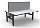 Boost Crank Manual Height Adjustable Back To Back Workstation With Screen - Natural White/ Black Satin 1500mm W x 1500mm D x 705mm - 1155mm H (Overall) 1500mm W x 750mm D x 705mm - 1155mm H (Per User) Overall Height AFFL including Screen: 1330mm H E0 Rated 25mm T Table Top Finished In Natural White With Rigid Edging & 50mm D Scallop Cut Out To Rear Underframe Finished In Black Satin Powder Coat 1500mm W x 900mm H x 30mm T Pinnable Privacy Screen Finished In Grey Fabric With Matching Black P/C Extrusion Column Size: 90mm x 60mm Frame Height: 680mm - 1130mm Max Speed: 15mm Per Second ( 10mm Per Full Turn Circle ) Adjustable Leveling Feet Desk Mounting Top Plate Size: 500mm Steel Gauge: 3.0mm, 2.0mm & 1.5mm Used Throughout Additional Items Also Available Include: Fully Ducted Cable Tray Complete With Power & Data Punchouts Internal & External To Tray ( B2-B2BCT15 ) Cable Tray Bridge ( B2-B2BBR ) Flexible Cable Snake ( B2-CBSNAKE ) 10 Year Warranty